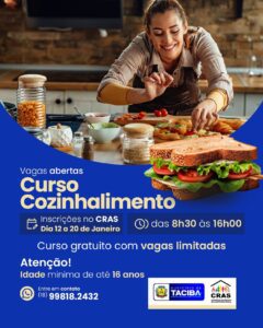 Inscrições até 20/01 no CRAS das 8h30 às 16h.